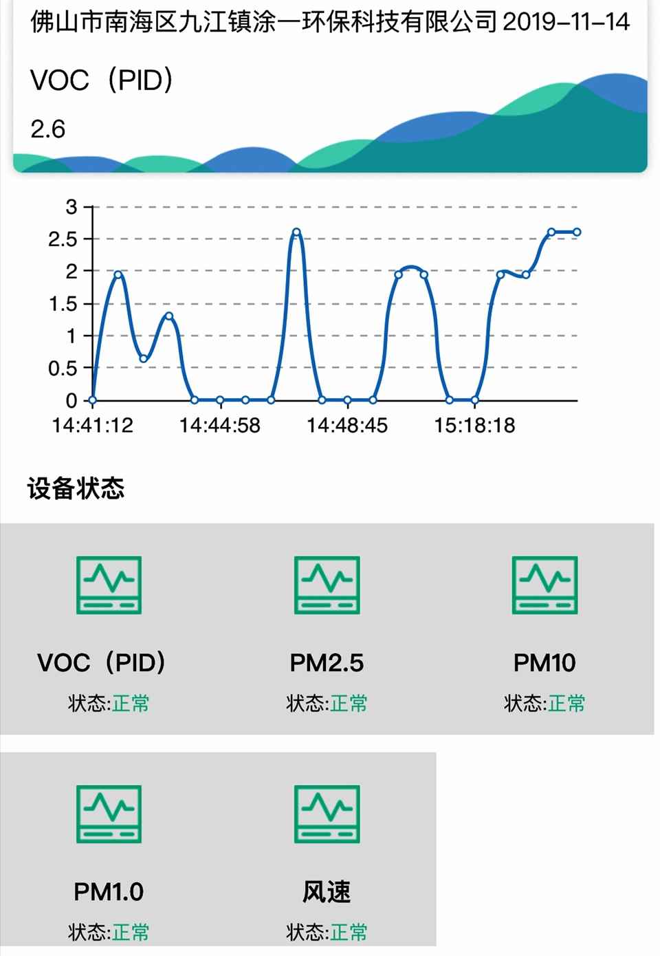 在考察現場,史國成還打開手機向考察團一行展示了涂一涂裝的實時在線監測系統。“從手機上來看,VOC、PM2.5、PM10、PM1.0顯示的都是正常,說明我們的污染物排放很低;如果污染物排放超標的話,手機上就會顯示紅色,這樣我們就會采取應對措施。這套在線監測系統目前已經聯網到了生態環境保局,環保部門人員可以足不出戶隨時在線監測污染物排放情況,這就降低了政府環保管控風險。”