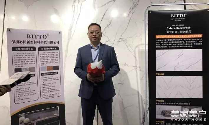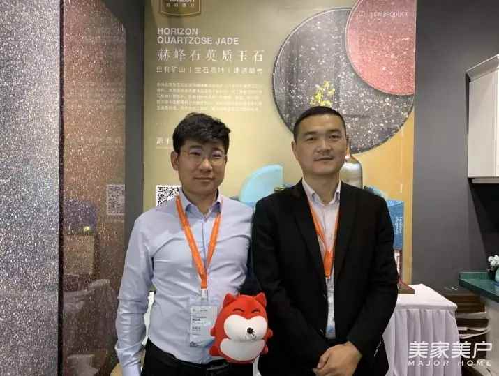 展會上,赫峰企業的瑪瑙及石英玉合成石材十分亮眼。產品獨特,能用于家居生活的各類空間臺面,花色共有 100 多款,每款都是獨一無二的樣式,無法復制。