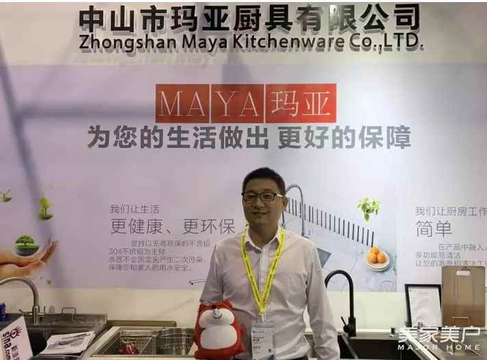 中山瑪亞成立于 2007 年,專注廚房水槽龍頭、廚房洗碗機、廚房智能消毒水槽、廚房垃圾處理器開發制造,旨在為消費者打造更健康環保的智能廚衛產品。隨著北上廣逐漸推行垃圾分類,垃圾處理器成為市場主流產品。展位現場以環保智能為主,廚房水槽集清潔、清洗消毒、海鮮消毒為一體,去農殘、降解激素力度 99%。據了解,在結束的雙 11 大促中,企業電商渠道共賣出 2000 多套,市場需求量大。