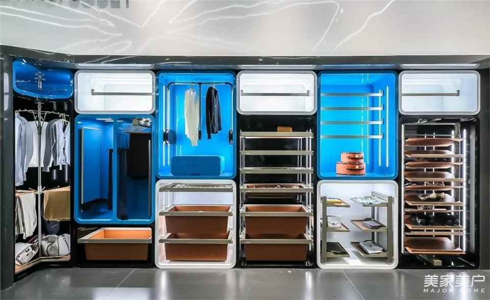 展館內最亮眼的色彩,來自悍高阿瑪尼·衣柜功能五金系列。高雅精致的美學配色,明朗簡約的工業(yè)設計之美,可滿足一切衣物收納所需,吸引著那些追求原創(chuàng)高品質生活的觀眾。