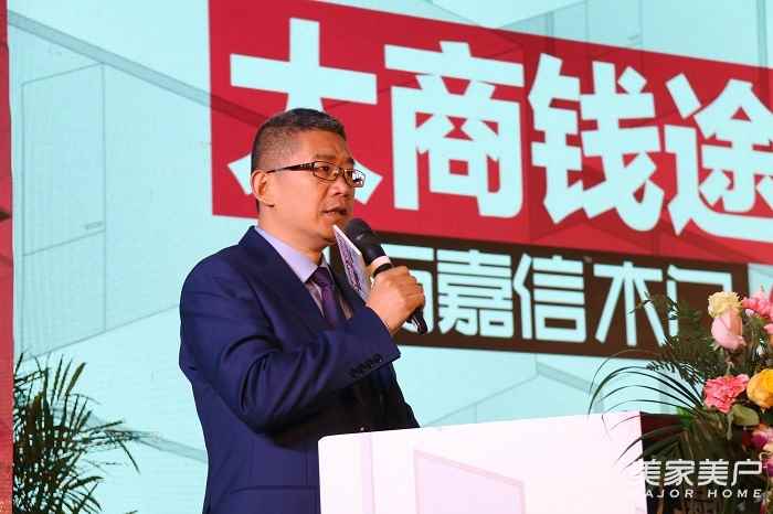 中國木材與木制品流通協(xié)會全屋定制分會秘書長李玉明致辭 李秘書長分析了中國木門行業(yè)的未來發(fā)展趨勢,講到了萬嘉信能在逆勢中穩(wěn)健增長的原因。他從三個方面講述了萬嘉信的成功之道,第一是超強的學習力,老板熱愛學習,帶動整個團隊好學不倦;第二是超快的執(zhí)行力,從企業(yè)領導人注重高效工作到團隊的有效執(zhí)行,使得萬嘉信能脫穎而出;第三是超動人的情感力,“萬嘉信的發(fā)展宗旨是因誠信而生,因愛而在,因幸福而永恒”,這些特質注定了萬嘉信未來會大有可為!!