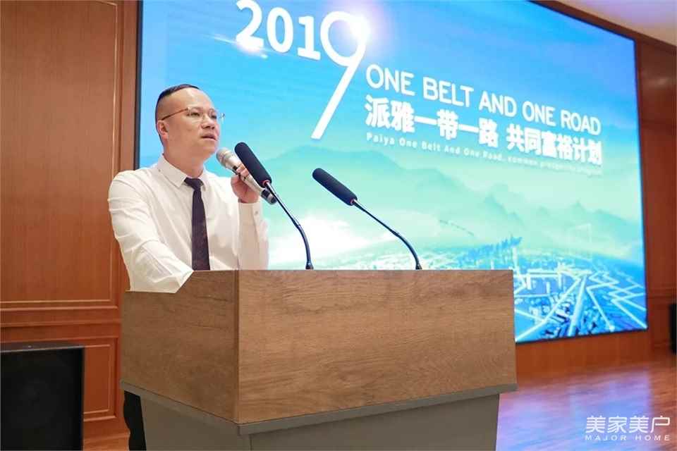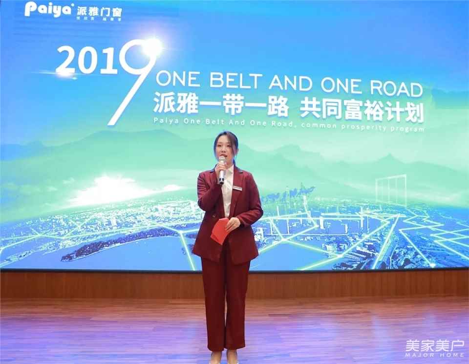 派雅門窗總經理易總在致辭中講到:《派雅一帶一路 共同富裕計劃》項目,是公司《騰飛2019》營銷戰略規劃的重頭戲。早在去年的年中,公司高層就察覺到2019年門窗市場的變化,公司經過大半年的精心準備,投入大量的人力、財力、物力。我們的目標只有一個,整合公司最新的營銷理念和千萬大商的成功經驗,讓參加這次項目的經銷商家人們能夠在競爭中成長,成長中收獲,共同打造利益共同體,贏造市場,締造更多的千萬大商,實現和諧共贏。同時,從去年年初開始,派雅門窗深化內部管理變革,優化生產流程,變革至今已取得重大的突破,未來,我們也將全面提升生產效率,縮短交貨周期,助力終端全力騰飛!