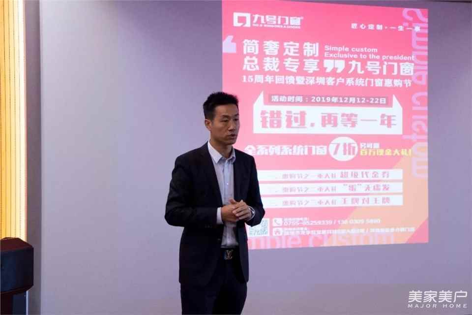 九號門窗總部大區(qū)經理-彭東、終端市場副總經理-詹盛林分別為現(xiàn)場來賓及客戶作了系統(tǒng)門窗優(yōu)勢分享及本次系統(tǒng)門窗惠購節(jié)活動的介紹。現(xiàn)場為客戶普及系統(tǒng)門窗知識,對比普通門窗優(yōu)缺點進行闡述,為業(yè)主朋友門窗安裝提供了寶貴的參考標準!