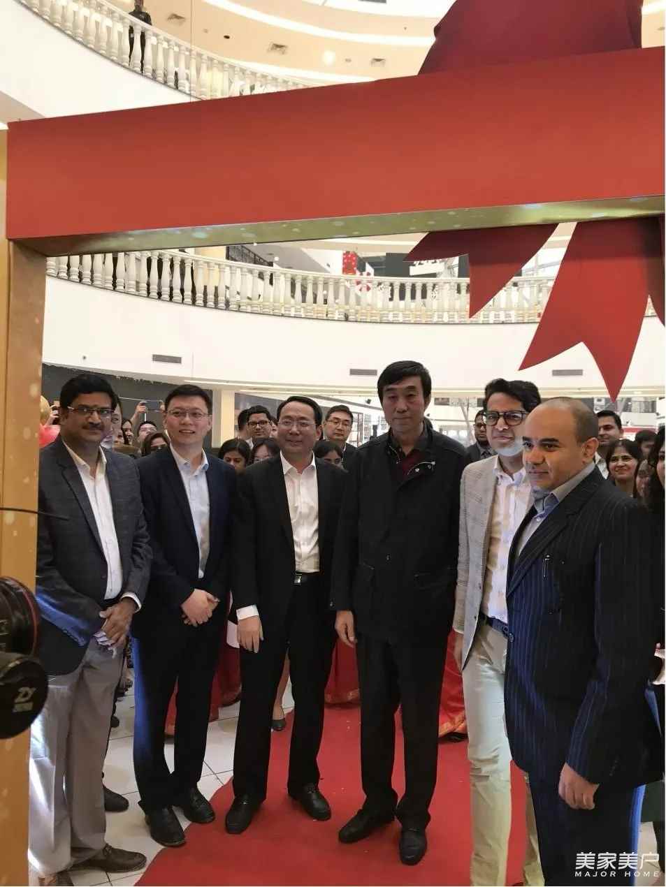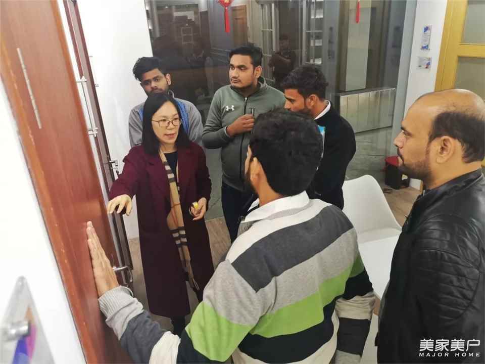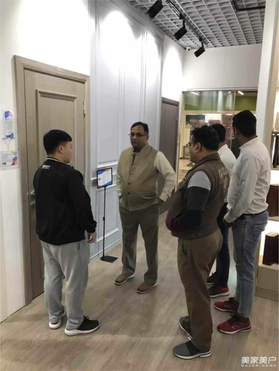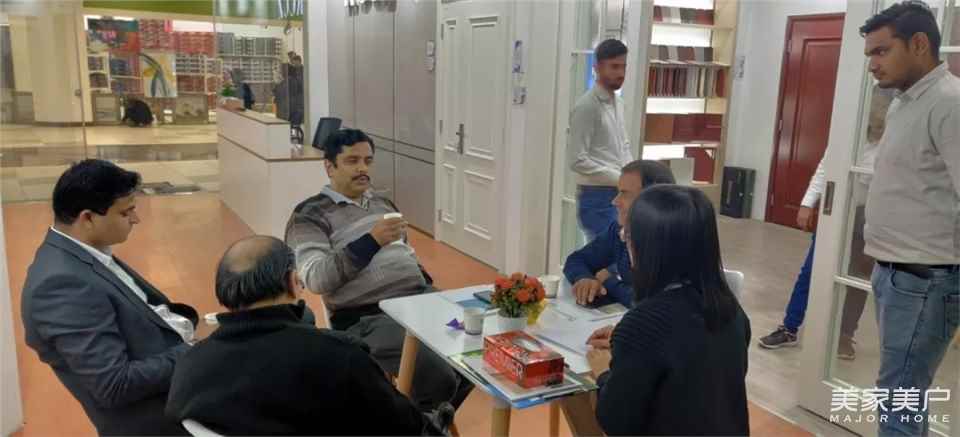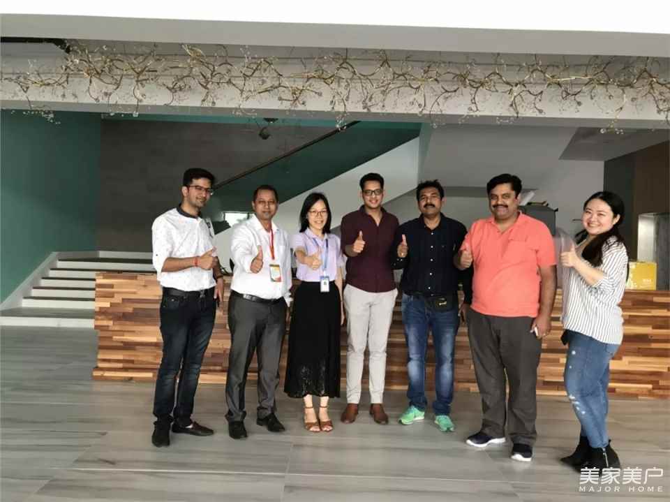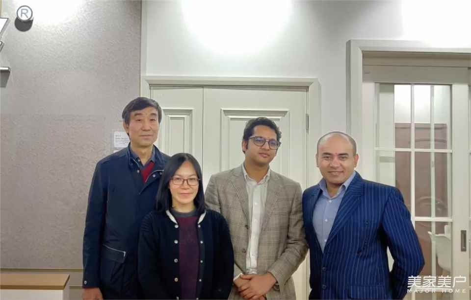 ▲印度OMAXE集團常務董事Jatin Goel、總經理Avneet Soni、CHINAMEX董事長郝鋒、印度龍城總經理王偉、巴林龍城總經理鄭碩親臨展廳,對潤成創展產品設計、質量表示高度肯定。2018年6月15日OMAXE已經實地考察工廠實力。