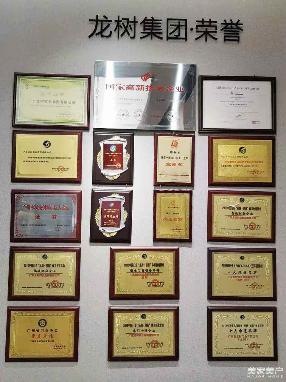龍樹自2002年成立以來,龍樹人高度團結、扎實工作,一步一個腳印,在全體龍樹人的共同努力及社會各界的關心和幫助下,龍樹先后獲得了全國工商聯門業專委會會長單位、國家高新技術企業、廣州市科技創新小巨人、中國門業十大品牌等諸多殊榮,并牽頭門業企業制定了建筑用鋼木室內門、建筑用生態室內門的行業標準。一項項榮譽的獲得,激勵著全體龍樹人更加鏗鏘的前進!