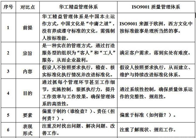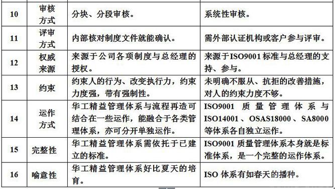 我們從執行的角度來分析對比下,華工精益與ISO的區別: