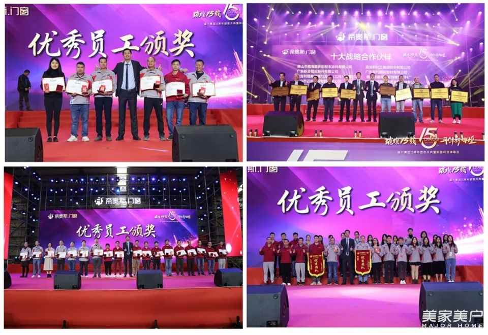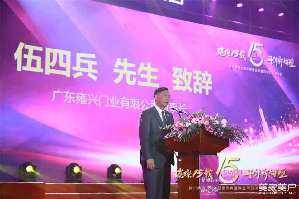 15年白駒過隙,15年風雨兼程,15年歲月如歌。2019年12月21日,帝奧斯迎來了自己的15周歲生日。雍興集團董事長伍四兵先生,夫人鄧秀芳女士;集團總經理伍尚勇先生、夫人黃鳳愛女士;帝奧斯總經理伍尚榮先生、夫人彭翠英女士,營銷副總梁煥新先生,行政副總謝志玲女士、營銷總監唐毅靈先生、商學院郭家路老師、市場部羅聰先生、招商部王令先生,攜手帝奧斯合作伙伴、供應商朋友,經銷商家人,與集團全體員工2600多人共聚一堂,共慶帝奧斯門窗成立15周年。