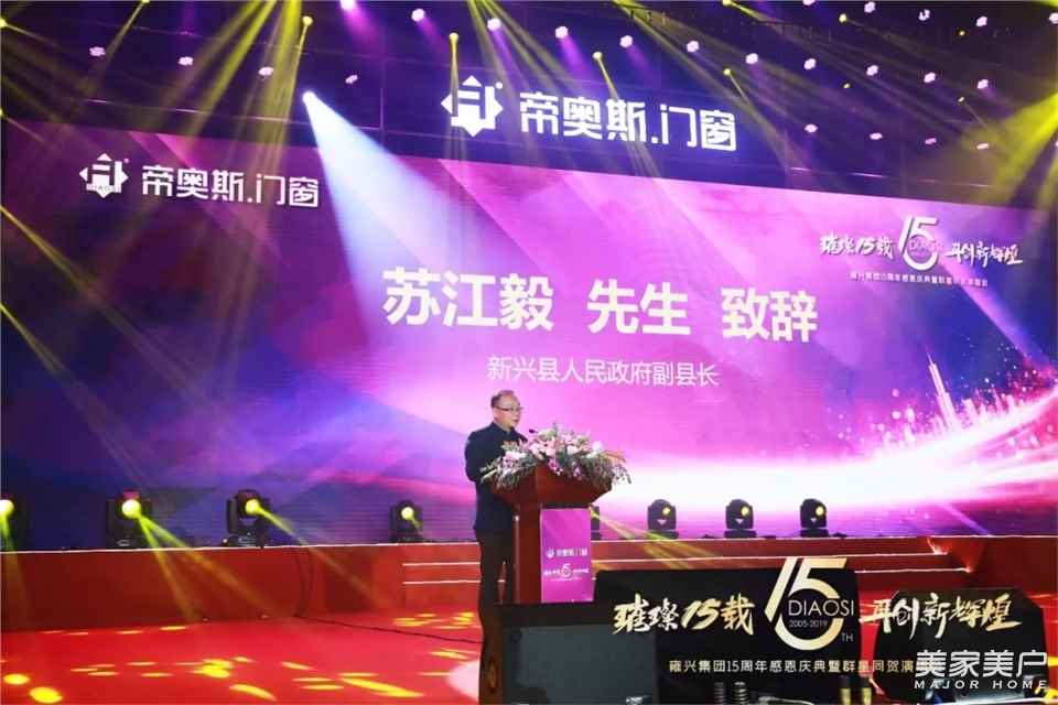 新興縣人民政府副縣長蘇江毅先生在致辭中充分肯定了帝奧斯門窗取得的成績,對帝奧斯門窗15年來所作出的社會貢獻給予了高度贊賞,希望帝奧斯門窗再接再厲,再創佳績。