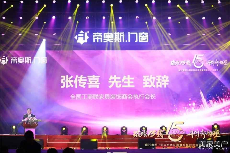 全國工商聯家具裝飾商會執行會長張傳喜先生代表全國工商聯家具裝飾商會,對帝奧斯門窗成立15周年表示祝賀,祝愿帝奧斯門窗越來越好,再創輝煌。