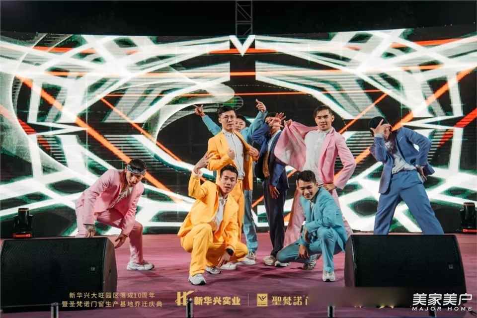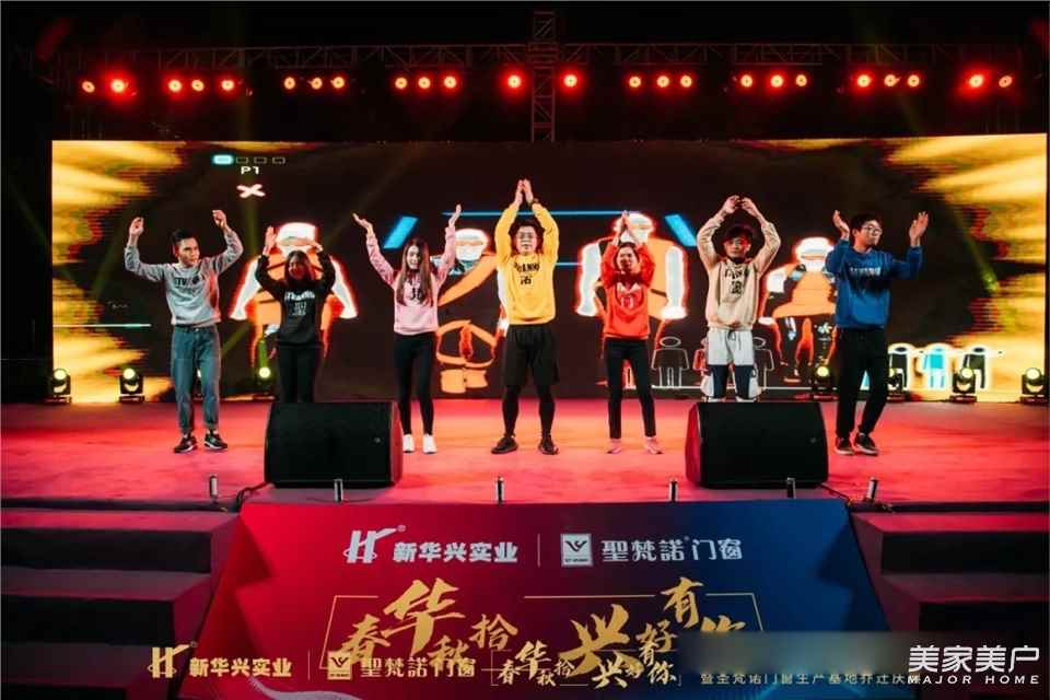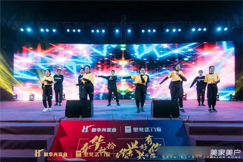 歌舞齊賀盛典現(xiàn)場,歌舞升平,全體員工齊賀,現(xiàn)場合唱《我和我的祖國》。 更有圣梵諾營銷中心員工們帶來的舞蹈節(jié)目 《圣梵諾后生仔》、圣梵諾生產(chǎn)中心的舞蹈 《門窗使者》 ,還盛邀著名街舞團(tuán)隊(duì)表演國潮街舞《金獅送吉祥》、 《厲害了,我的新華興!》、中國好聲音湖南賽區(qū)冠軍、抖音熱門百萬粉絲女歌手胡幕小姐演唱 《我恨我癡心》、《la la love》等膾炙人口的歌曲將現(xiàn)場氣氛推向更熱烈的高潮。