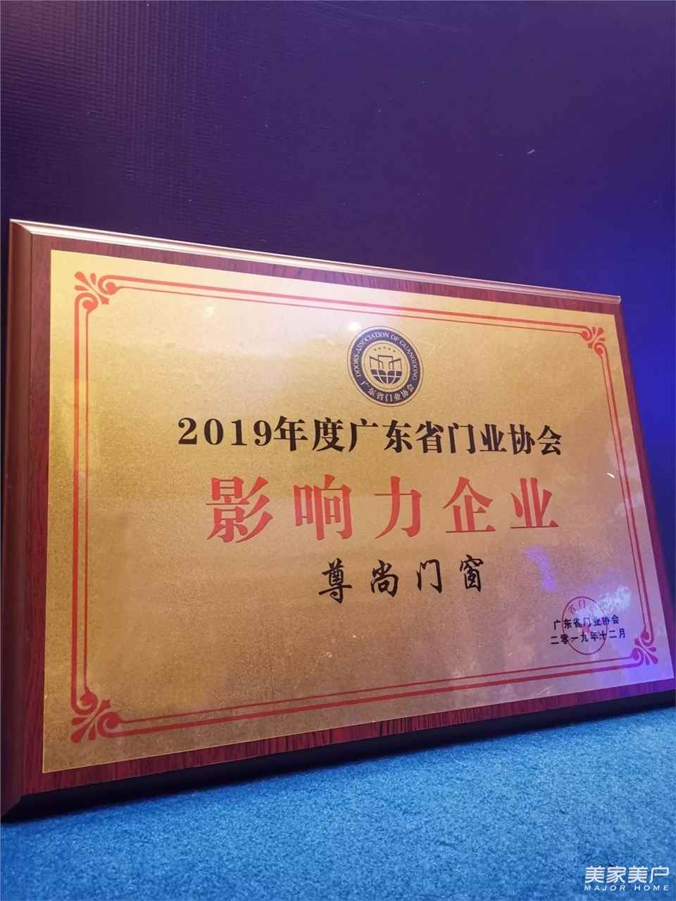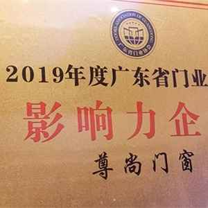 尊尚門窗榮獲“2019年度廣東省門業協會影響力企業”稱號