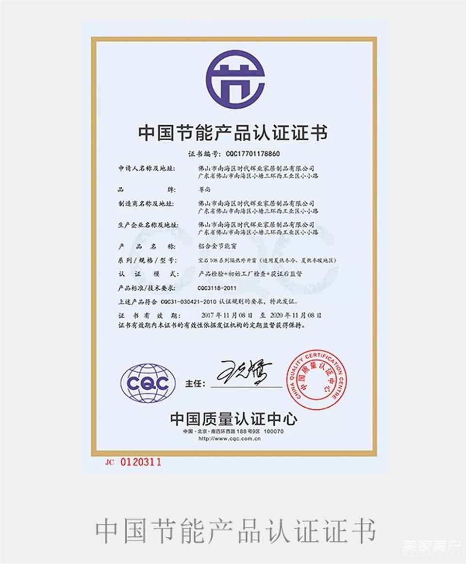 尊尚門窗作為即將擁有16年制造經驗,務實打造品牌戰略的佛山鋁合金門窗企業之一。近年尊尚門窗自身推行7S規范化管理,從根源上對品質進行提升,產品通過中國CQC節能產品認證,在自主研發的道路上,多次獲實用新型專利/外觀設計專利證書,能從門窗各種參數規范、技術標準中,提出有前行意義和作用的標準參考和編制力量。為填補中國鋁合金門窗的標準空白,起到中國十大鋁合金門窗品牌企業該有的技術實力支持。