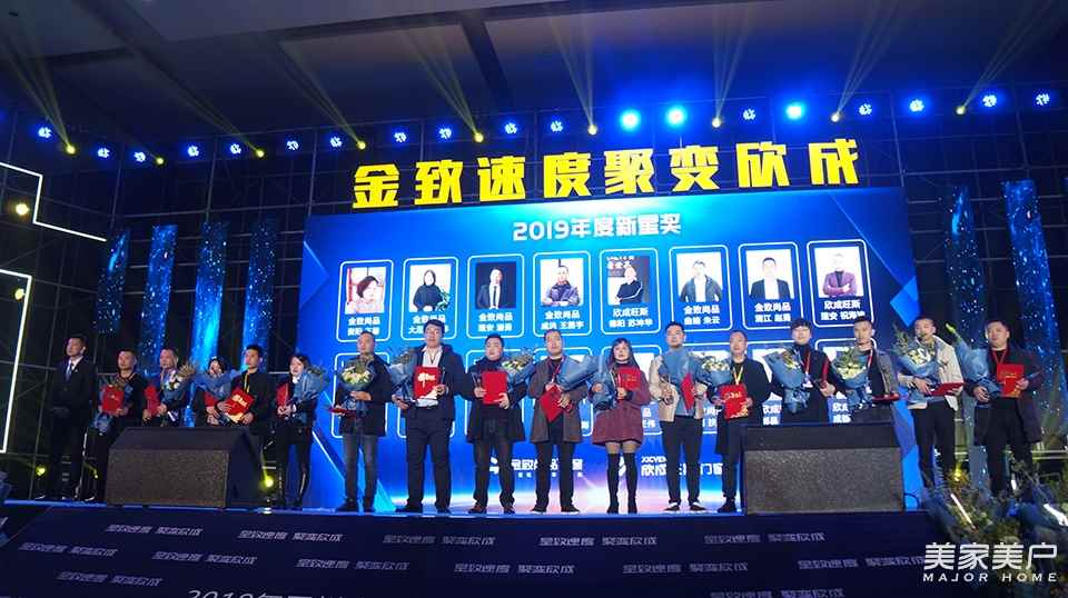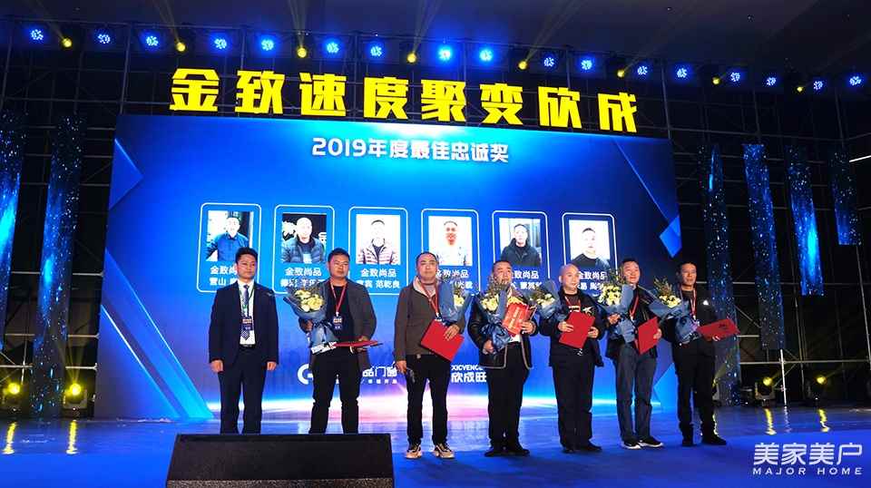 為表彰2019年為公司做出貢獻的員工,為回饋2019年為公司做出努力的經銷商,為感謝2019年為公司做出支持的供應商。會上,金致尚品門窗舉行了盛大的頒獎典禮,為公司員工、經銷商成員、供應商代表頒發了各類獎項。其中,為公司員工頒發了最佳領導獎、最佳管理獎、忠誠獎、最佳新人獎、最佳銷售獎、最佳進步獎、優秀員工獎。為經銷商成員頒發了2019年度人物獎、服務明星獎、金牌店長獎、2019年度銷售進步獎、2019年度最佳銷售獎、2019年度最佳忠誠獎、2019年度金銷獎。為供應商代表頒發了最佳戰略合作伙伴獎、優秀供應商獎、最佳交付獎、金牌供應獎、最佳供應服務獎。