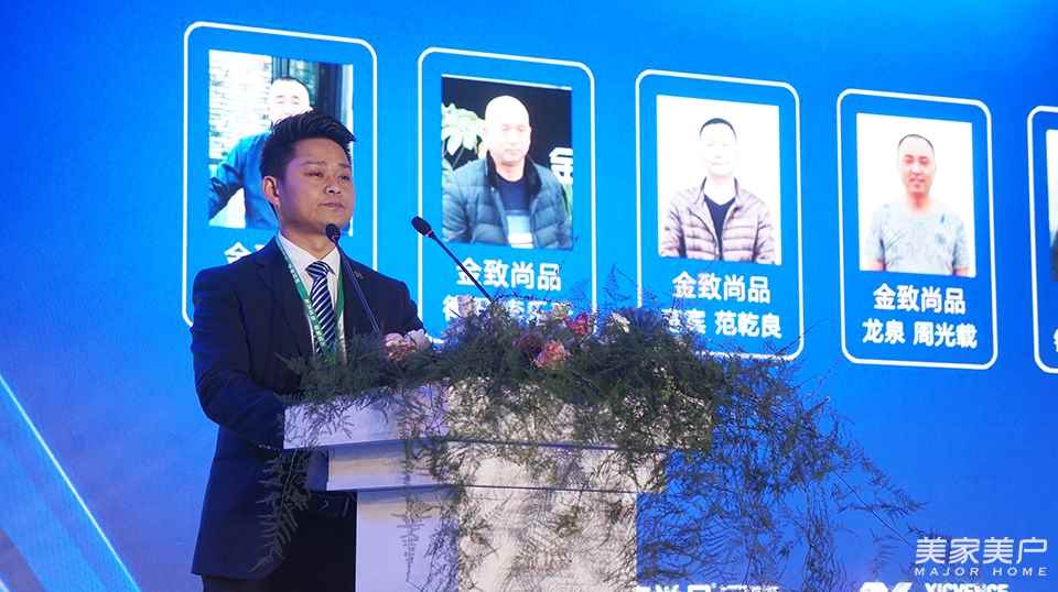 四川金致尚品門窗有限公司總經理范澤銀發言。發言中,范澤銀對金致尚品門窗2019年工作作了總結。2019年,金致尚品門窗公司榮獲多項大獎和殊榮,其中包括中國門窗品牌50強、中國門窗匠心品牌30強、中國最具投資價值獎、四川省省門窗協會副會長單位、建材家居行業渠道影響力領軍品牌等。同時,公司與多家權威機構和知名品牌達成合作,大西南地區新增建立標準專賣店54家,其中入駐紅星美凱龍11個,入駐居然之家23個、入駐其他品牌商場20余家。范澤銀說:“2015年,金致尚品門窗懷著對行業的憧憬,對事業的熱忱,進入了快速發展的門窗行業。五年來,伴隨著風雨一路拼搏前行,身后的深刻足跡印證了企業發展的光輝歷程。”多年來,金致尚品門窗一直潛心研究門窗行業運營模式,整合人力密集和信息密集兩個要素。做到人員的高效利用和信息的高度共享,從而為客戶提供更優質的服務,得到客戶的高度信任。2019年,金致尚品門窗達成年銷售破億的的銷量壯舉,完成了公司三五戰略規劃第一步。接下來,公司的標準化車間將達到4萬平米,努力實現五年銷售額目標突破4億元的戰略發展。