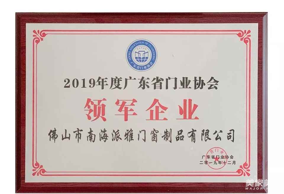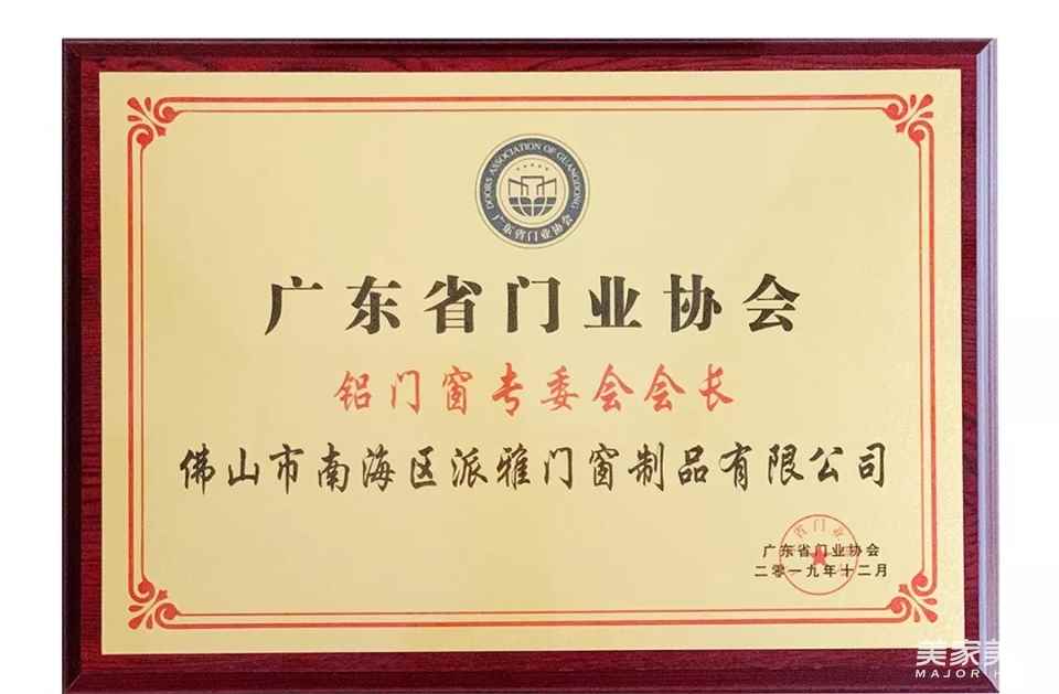 屢獲殊榮 | 派雅門窗榮膺“廣東省門業協會鋁門窗專委會會長”和“領軍企業”兩項殊榮