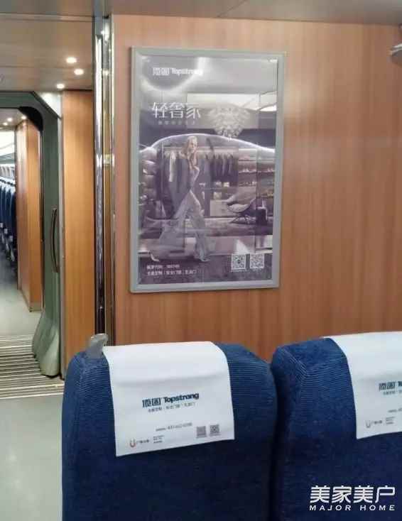 頂固攜手高鐵,將消費者對美好生活的追求植入到每一次出行當中。在列車上的小桌版、頭片、行李架、車廂海報、語音播報等都融入了頂固的品牌內容,以客廳、廚房、衣帽間、臥室、入戶門等場景,喚起消費者對理想生活的向往。