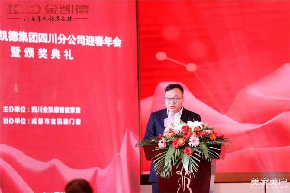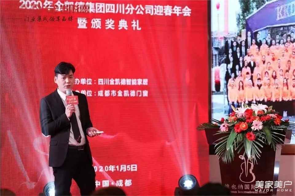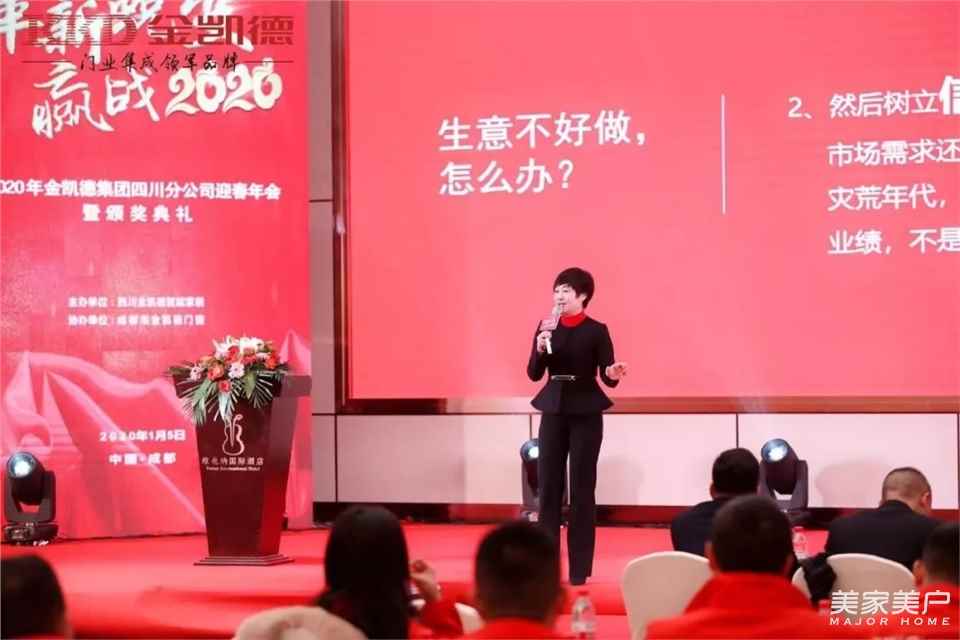 成都金凱德門窗總經理汪美琳女士激情昂揚的致辭拉開了今天盛會的序幕。回顧2019,金凱德奮勇向前,砥礪奮進;展望2020,只爭朝夕,不負韶華。