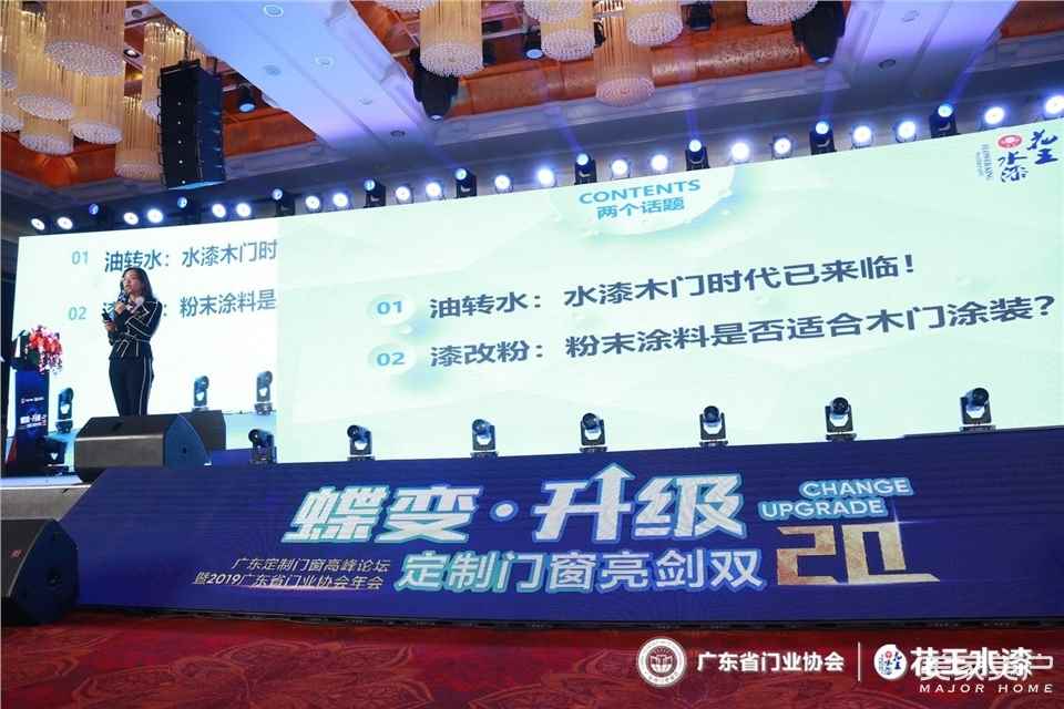 在2019年12月30日舉行的廣東省門業協會年會上,花王水漆創新技術中心總監孔霞博士以“花王水漆,助力木門綠色涂裝”為主題,以“油轉水”&“漆改粉”兩大話題,對多種類水性漆的常見技術問題、發展趨勢以及性能進行分析。