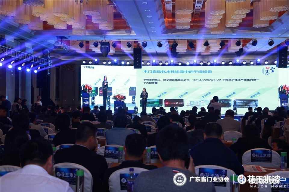 孔博士向與會嘉賓展示了花王水漆以行業前沿四大涂裝工藝與經典產品為核心的整體解決方案,從工藝、涂裝以及干燥等技術層面上提供高效成熟的“油轉水”落地流程,為門企做好了迎接水漆木門時代的準備。