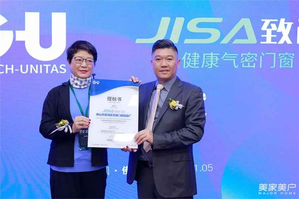 德國(guó)格屋G-U中國(guó)區(qū)總裁蕭雯女士為致尚門窗頒發(fā)2020戰(zhàn)略合作伙伴授權(quán)書(shū)
