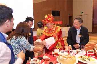 伴隨著多位領導上臺的祝酒儀式,答謝晚宴正式開始,財神爺來到現場為在場嘉賓帶來了新年的祝福。