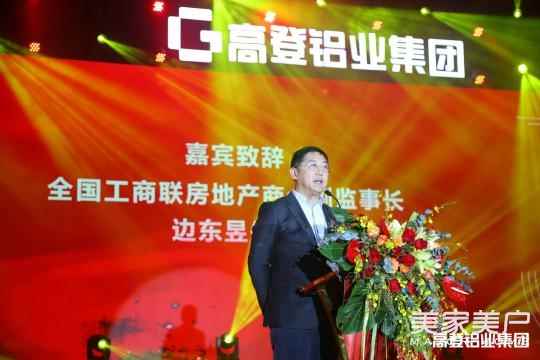 中國建筑系統門窗聯盟副理事長兼執行秘書長、全國工商房地產商會副監事長邊東昱上臺致辭。邊秘書長慶賀高登鋁業集團35周年成立之喜,并祝愿高登鋁業集團未來步步高登。