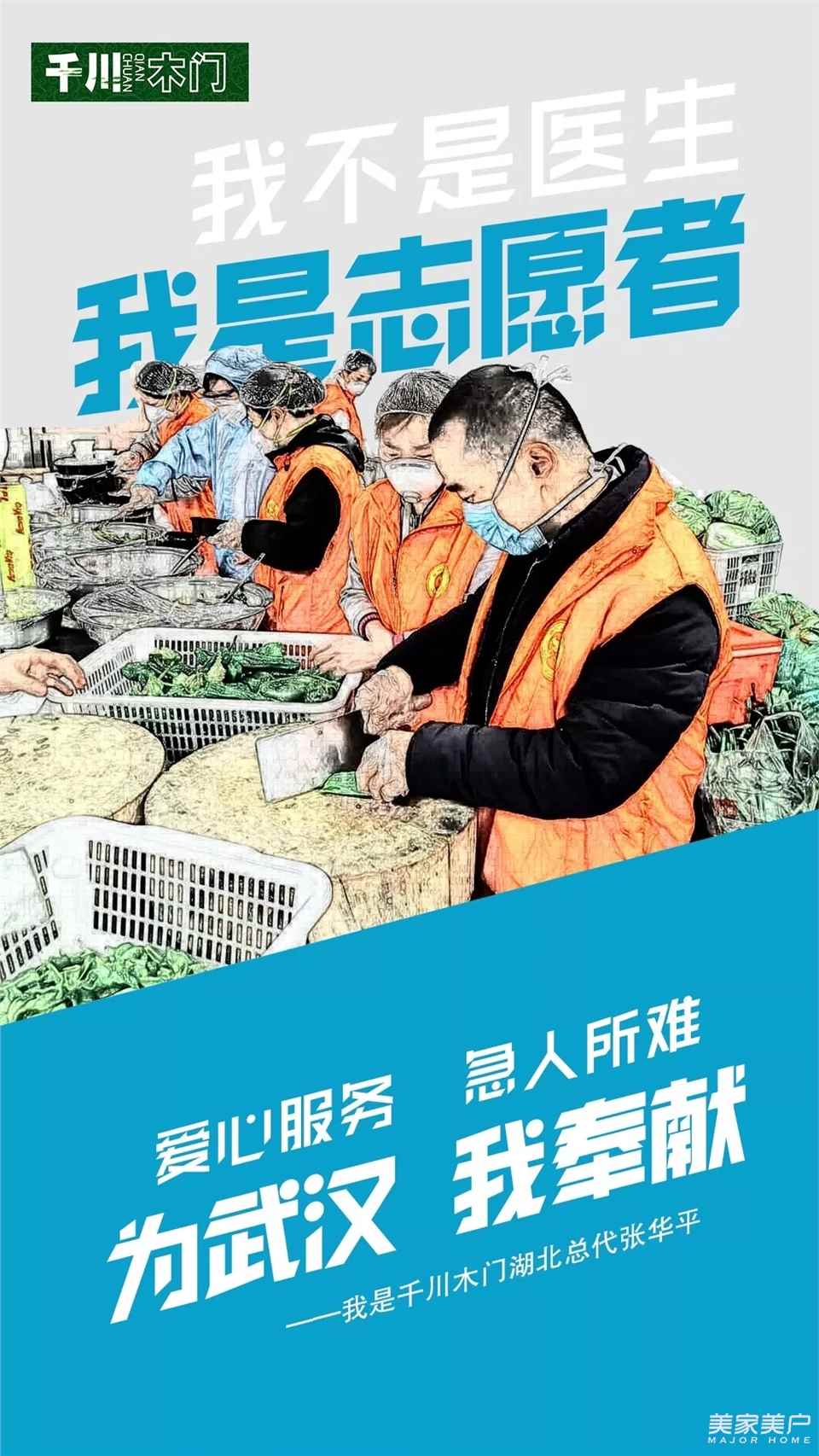 張華平,千川木門湖北區域總代。除夕前夜,一千多萬人的武漢宣布封城,在人人自危的時刻,他站出來主動加入疫情防控志愿者服務隊伍,面對風險,逆行而上,用內心的熱愛和切實的行動守護著這個城市。
