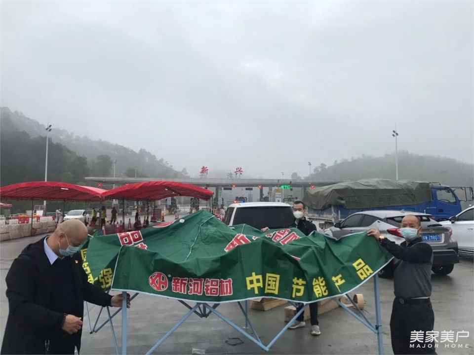 近日,廣東省普降強降雨,給當前防控新冠肺炎疫情各項工作帶來了不少的困難和挑戰。作為富有社會責任感的企業,新河鋁材在總經理潘總的批準下,由黨支部代表公司為新興主要的進出口通道,如高速出口、國道省道出口檢查站等送去帳篷、雨傘等保障物資。