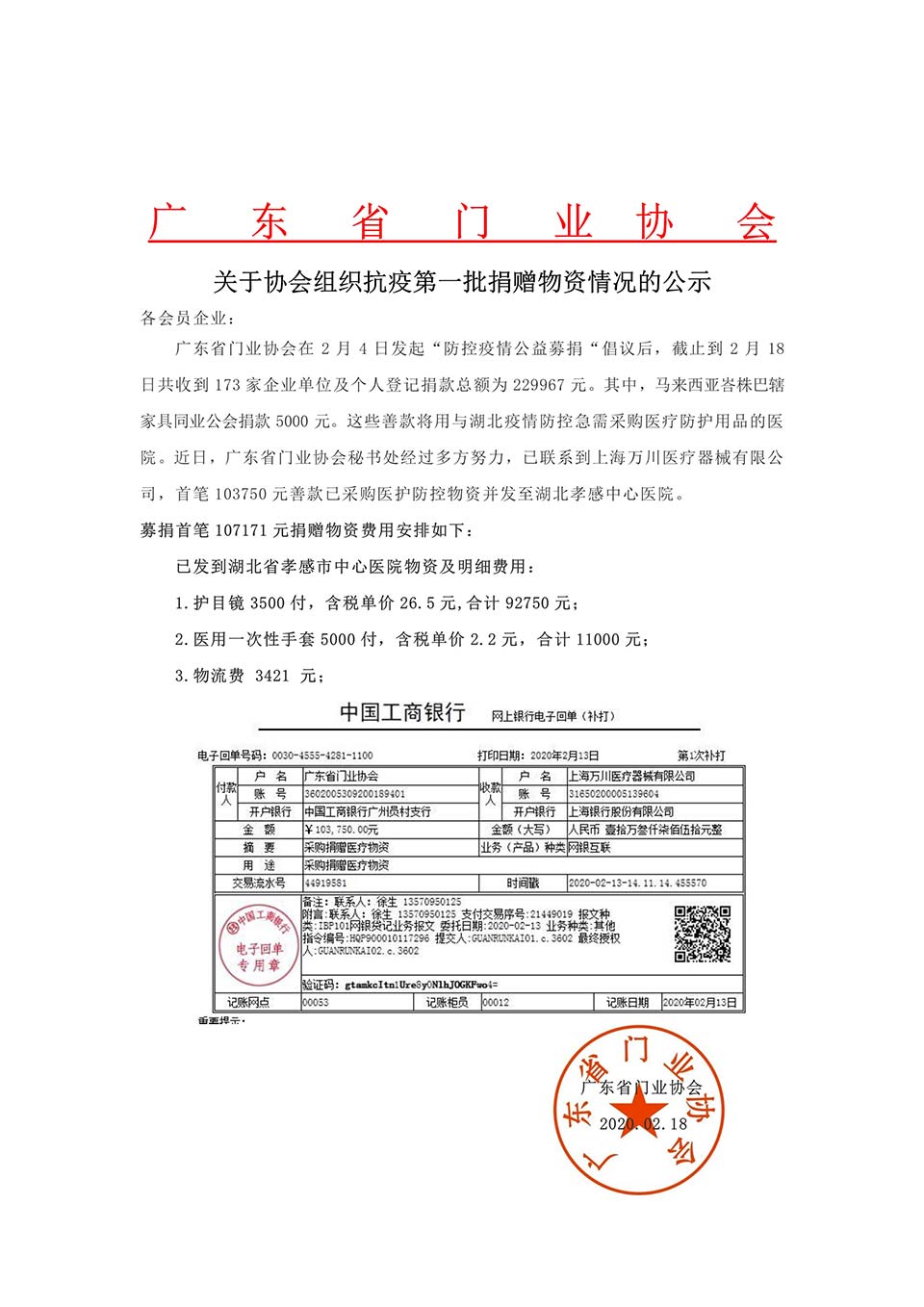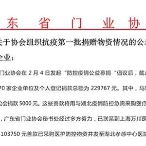 廣東省門業協會關于協會組織抗疫第一批捐贈物資情況的公示