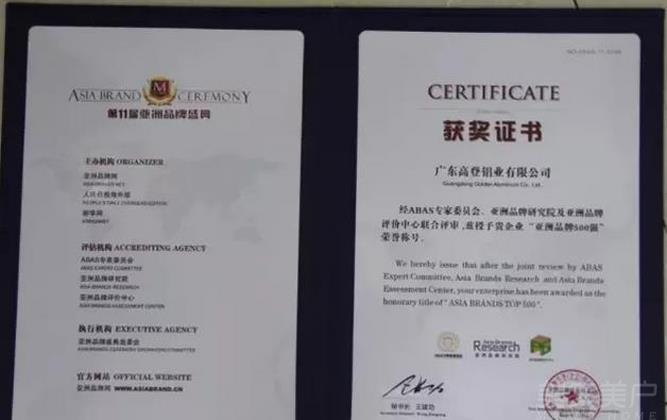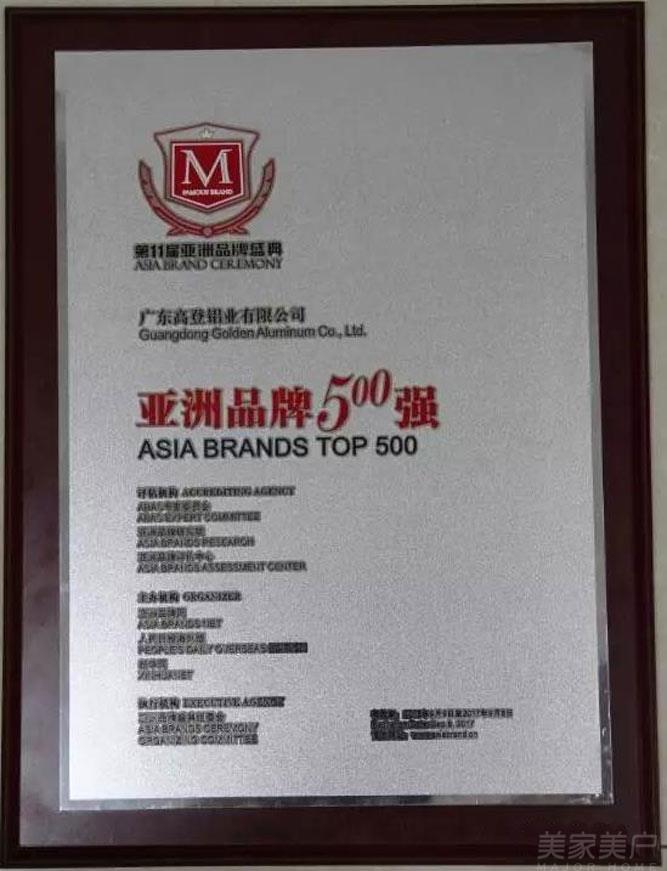 實(shí)力見證,廣東高登鋁業(yè)集團(tuán)再次榮獲“亞洲品牌500強(qiáng)”!