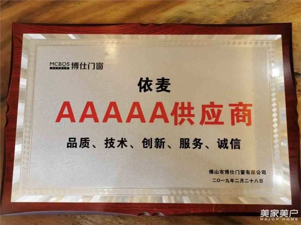 博仕門窗授予5A供應商榮譽稱號以及最佳品質獎。