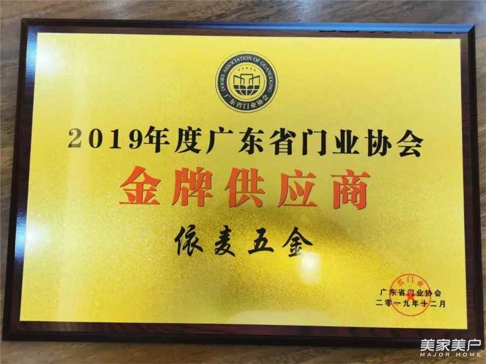 廣東省門業協會授予的金牌供應商榮譽稱號。