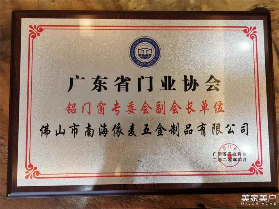 廣東省門業協會授予的鋁門窗專委會副會長單位。