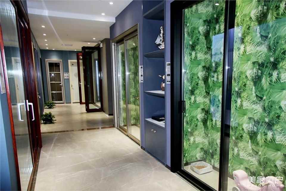 國際館的時尚元素、線性語言轉(zhuǎn)換為設(shè)計的美學(xué)意趣所在,表現(xiàn)為規(guī)則與不規(guī)則藝術(shù)蘊味。門窗與墻面采用鮮明的色彩搭配法,大面積采用藍色的墻面與生態(tài)門的色彩形成強烈的視覺沖擊,沉穩(wěn)的色彩運用產(chǎn)生一種寧靜的輕奢之感,加深人對店面的記憶點。