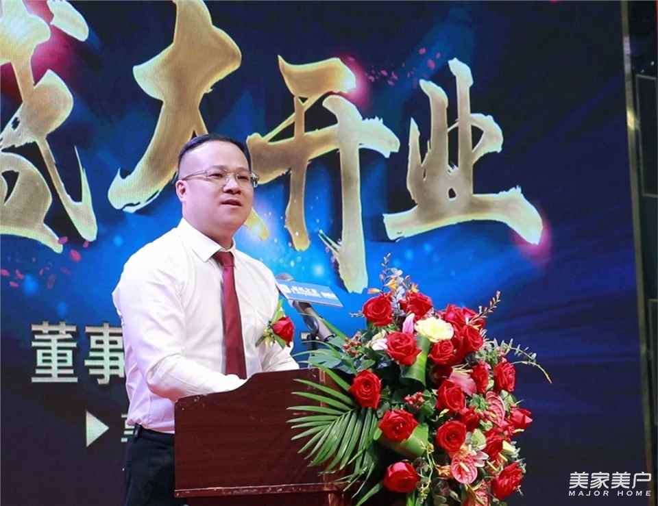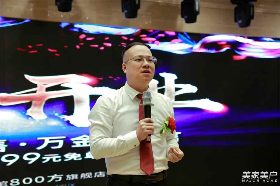 派雅營銷總經理陳海全先生致辭,派雅門窗成立于上世紀90年代,30年專注,只做好門窗,30年鑄造榮耀與輝煌,是中國高端家裝定制的開拓者、領潮人,是廣東省門業協會鋁門窗專委會會長單位,是30萬㎡的現代鋁門窗航母級生產制造基地,全國1000多家專賣店,多達3萬人的服務團隊,服務于中國億萬家庭!