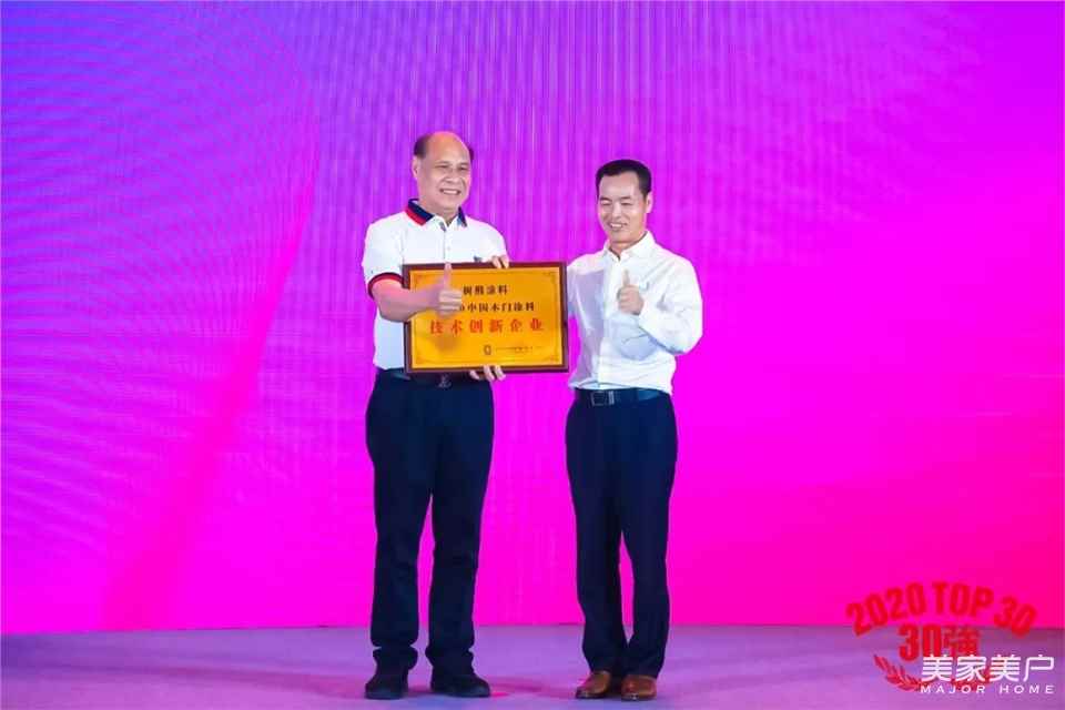 晚宴上,樹熊涂料榮獲“2020年中國木門涂料技術創新企業”、“2020年中國木門窗行業年會優秀供應商”和“2020年中國木門窗行業年會金牌戰略合作伙伴”的榮獲稱號。