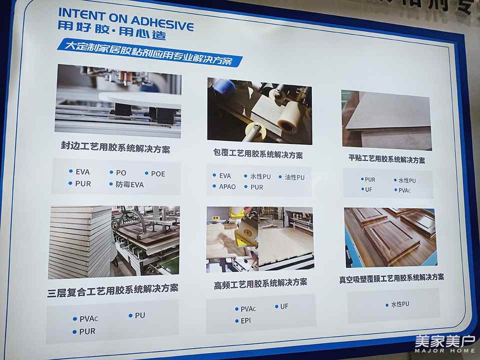 在應用方面,未來膠黏劑生產企業要不斷適應智能化生產線的需求,這也是膠黏劑企業的一個發展方向。應用膠水是一個勞動密集型的工序,但是行業的發展要求產品要配合生產線進行改變,這是永特耐的強項。程漢文說:“我們推出了一系列革命性的產品,比如復合AB膠,單組分3分鐘快速壓合產品,在門業我們的占有率超過95%,在市面上,有這種生產線的或者將上這種生產線的木制品企業95%都會使用永特耐的產品。這是我們近10年來,研發的巨大成果和進步?!?