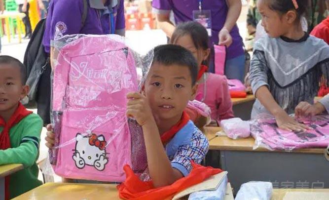 然后是經(jīng)銷商們跟工作人員為孩子們分發(fā)助學(xué)物資。