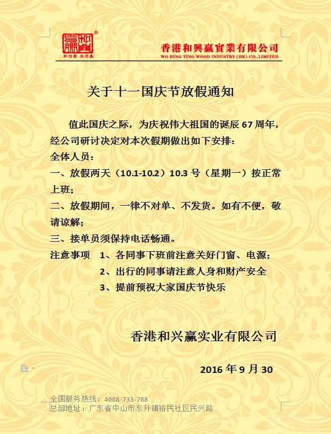 國慶佳節舉國同慶,榮幸你我攜手合作,在此送上真誠的問候,祝您的業績獨占魁首,期望我們今后的合作更上一層樓,互惠互利,共獲雙贏!-香港和興贏實業有限公司