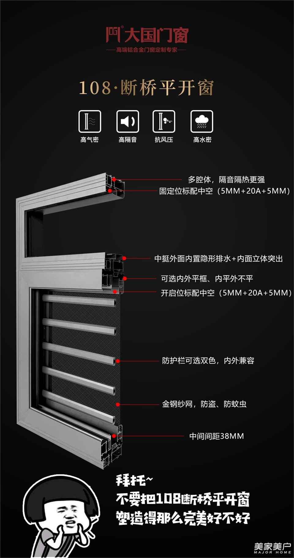 在窗戶板塊,眾所周知,未來斷橋平開窗是整個鋁門窗定制行業的一個風口,也是發展的主流趨勢。大國門窗在斷橋平開窗產品上傾注了大量的精力。今年,大國將主流款108系列升級為系統窗,使其具備了系統門窗的固有元素,同時對65和85延伸款以及100和120延伸款也做了改良和提升。楊總認為,“對于現在的市場,產品的提升是一個基礎,企業真正的內核是產品的品質。產品品質是支撐品牌的重要元素。所以,大國門窗一直以‘大國門,大國崛起’為經營理念,注重提升產品品質,用大國工匠的精神去鑄造大國品質。”
