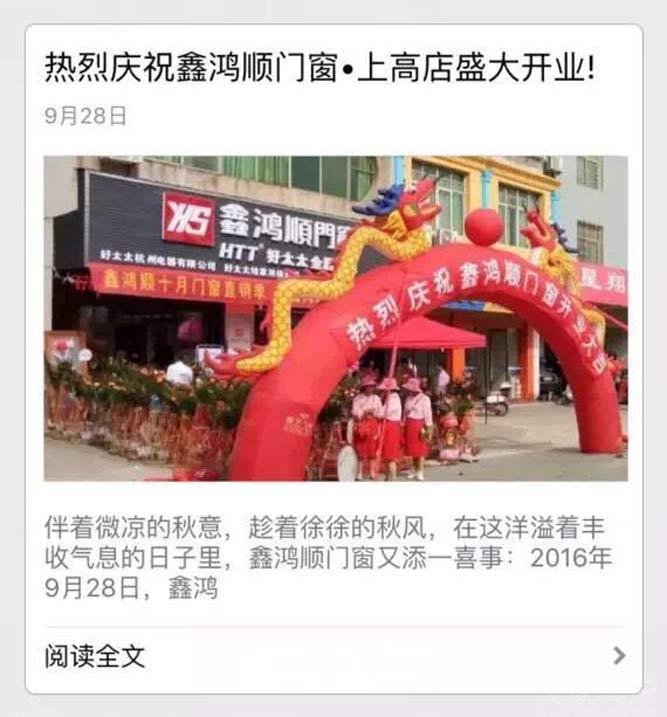 后來劉總在走訪門窗合作品牌的時候選擇了鑫鴻順門窗,經(jīng)過一段時期的洽談、設計、投建等動作,鑫鴻順門窗·漢陽店終于在2016年9月30日正式開業(yè)!