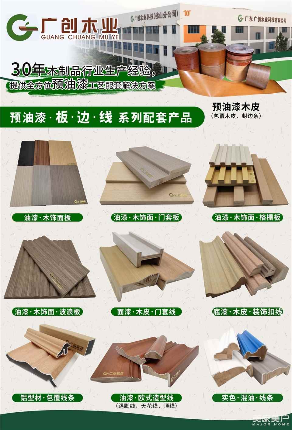羅廣文認為,對于木制品行業而言,行業的痛點主要在生產及工藝技術方面,如環保要求高、油漆噴涂效率低、用工成本高等。在木制品行業摸爬滾打多年的羅廣文認知到,木制品行業要解決這些難題,必須要通過對產品的生產工藝技術等方面進行全面改進。為解決木制品行業油漆加工痛點,廣創創新開發“預油漆系列產品”, 涵蓋包覆木皮、封邊條裝飾線條,以及木飾面板,實現“由線到面”的全套產品體系覆蓋,并結合30年木制品行業生產加工經驗,提供技術咨詢服務,軟硬件結合,助力企業顛覆油漆工藝,實現降本增效。木制品企業通過應用廣創木業研發的預油漆系列配套產品,不但解決了噴油打磨的復雜環節,減少了生產人員及車間場地空間,并且最大程度上節省了企業生產成本,提高了企業的生產效率。