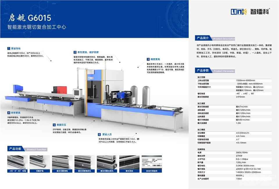 產品功能:-45°、0°、45°切角;切割護角;激光切割清角;激光切割角碼孔;激光切割注膠孔;激光劃線;激光打碼貼碼。