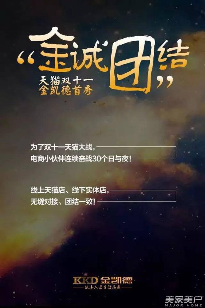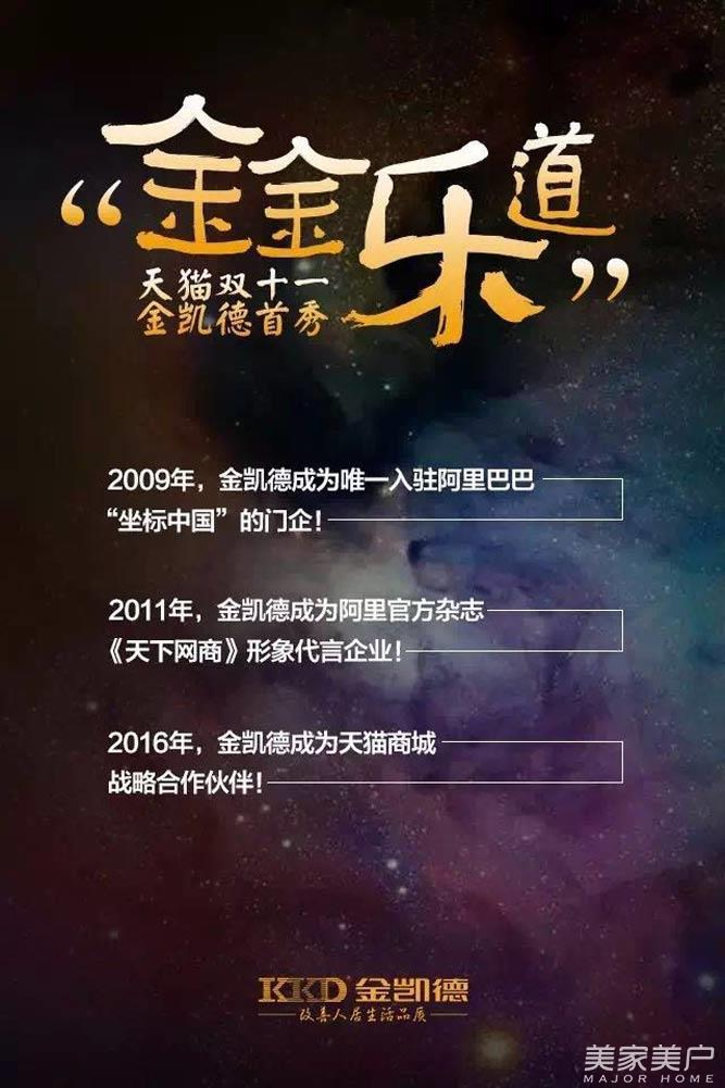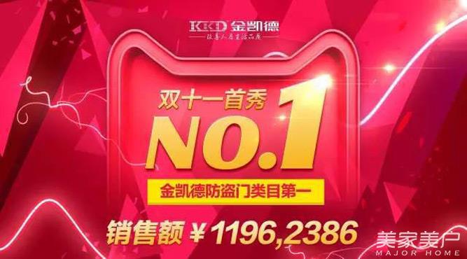 這是金凱德防盜門首次現身天貓雙十一活動,是進入天貓雙十一主會場的全國兩家防盜門門企之一。