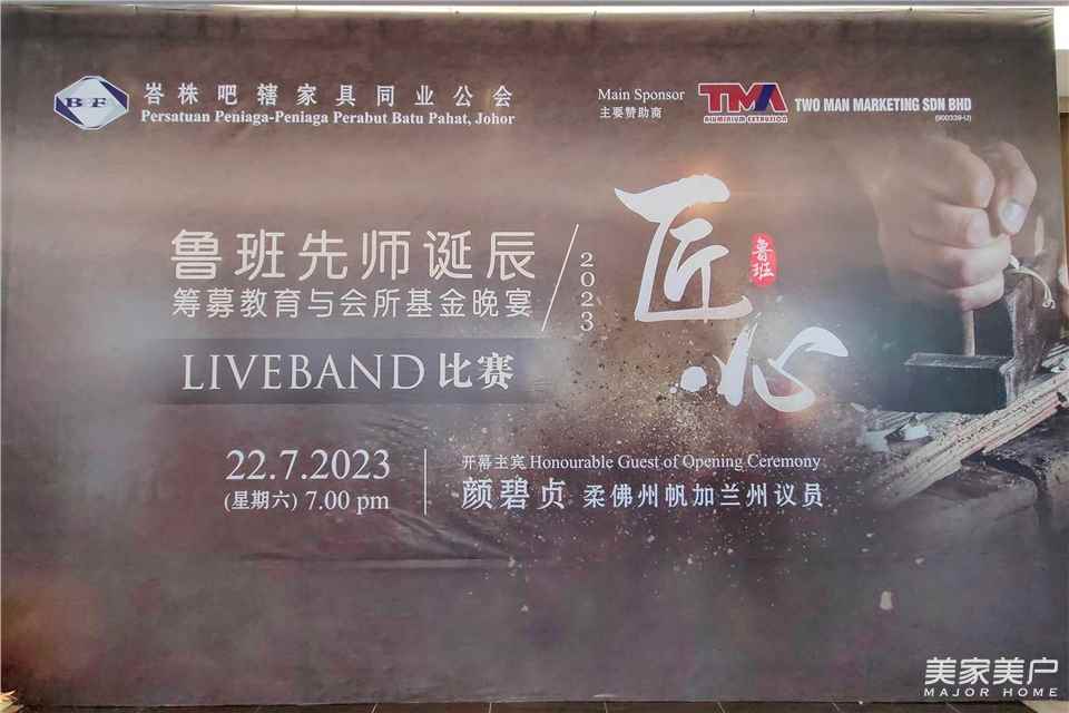 當晚,由馬來西亞峇株吧轄家具同業公會主辦的“2023魯班先師誕辰慶典”晚宴隆重舉行。