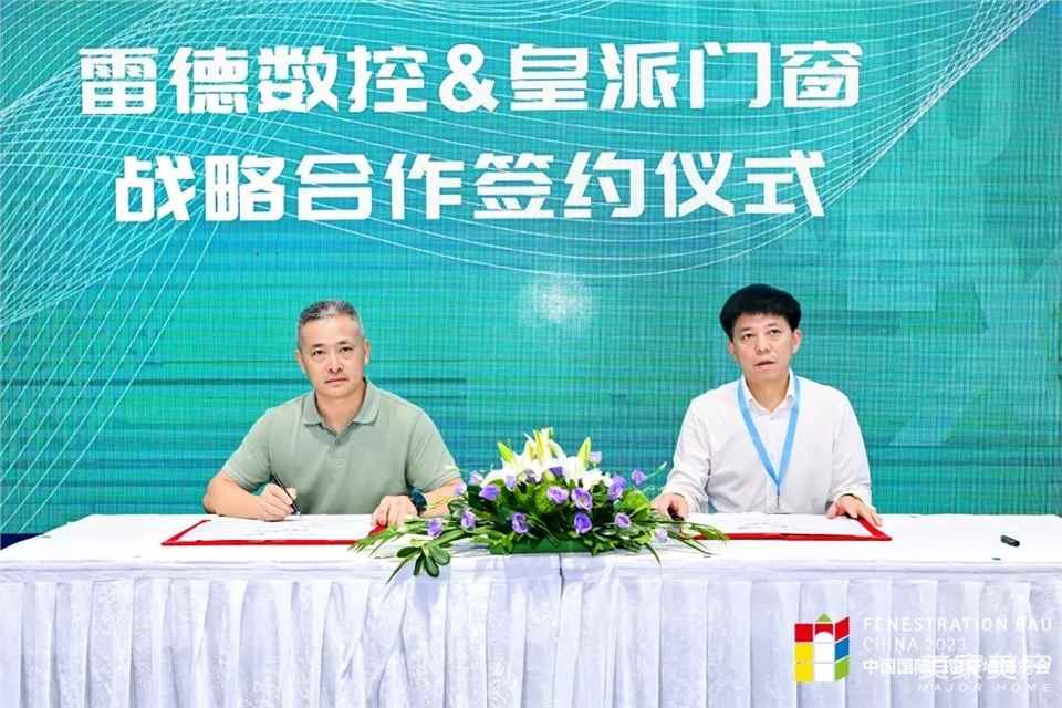 沙龍期間,皇派門窗與雷德數(shù)控現(xiàn)場簽訂了戰(zhàn)略合作協(xié)議。預示著雙方接下來將更加緊密地進行合作,共謀發(fā)展,為門窗事業(yè)貢獻力量。