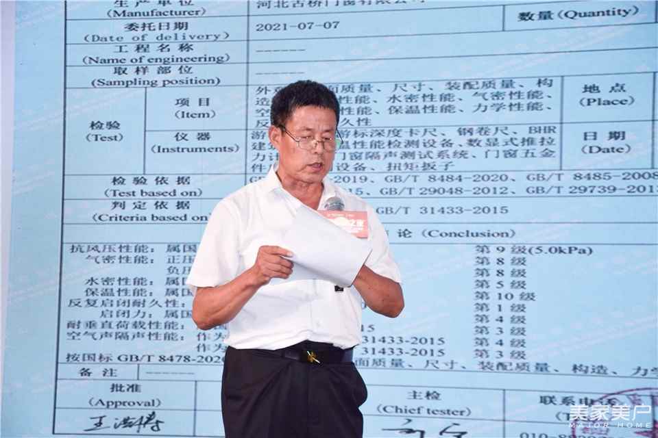 河北古橋門窗有限公司董事長張連元帶來《鋁合金系統門窗全系統創新結構》新品介紹,分享了河北古橋門窗超強密封窗系列獨創的“水淹式”密封檢測裝置。該產品僅靠膠條進行密封(不打密封膠),整窗注水 30 厘米深,帶水放置三個月,角部無滲水,整窗滴水不漏,性能十分優異。
