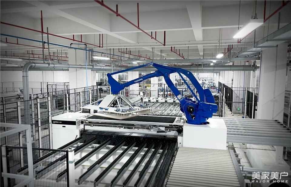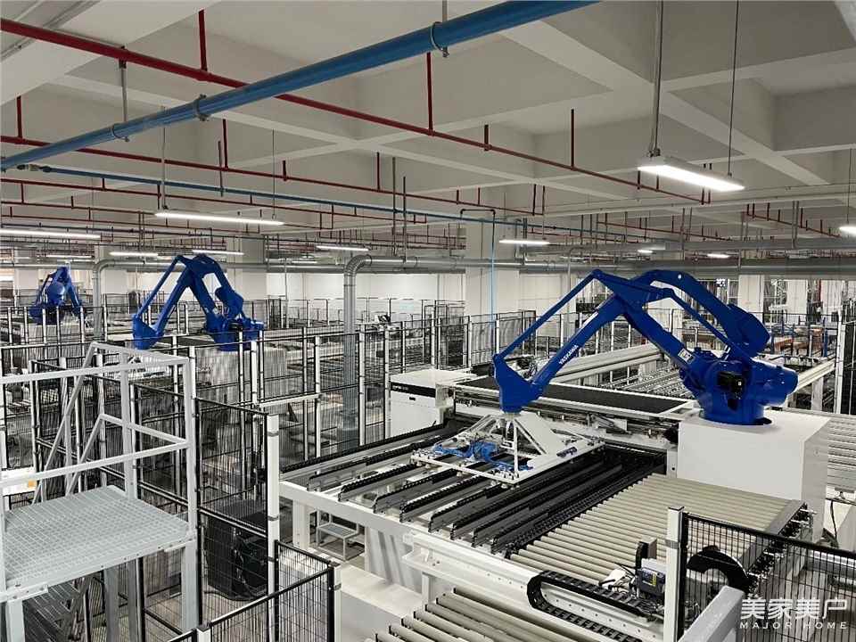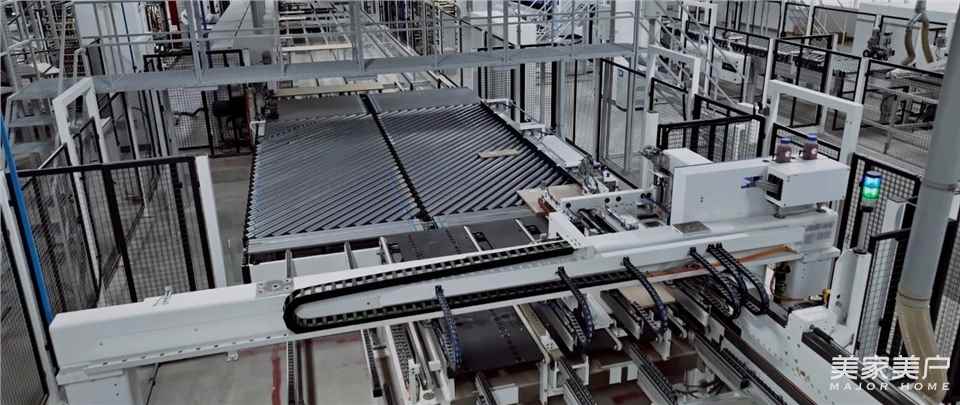 同時,豪邁為頂固提供龍門架料倉、5臺機器人電子鋸、插盤式緩存封邊連線、加工中心、包裝機等高質(zhì)量、高能效、高穩(wěn)定性的智能產(chǎn)線設備,搭配“HOMAG iX”家具生產(chǎn)軟件和脈云PulseCloud云平臺,打造了軟硬件協(xié)同作戰(zhàn)的智能制造生態(tài)。