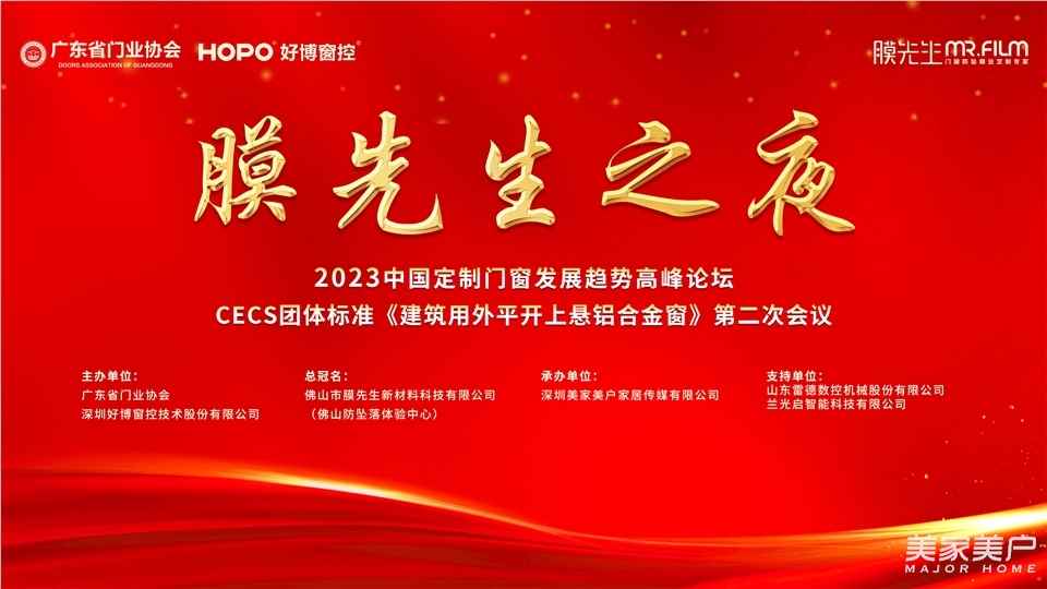 1116日,由“膜先生”總冠名、廣東省門業協會與好博窗控聯合主辦、深圳美家美戶家居傳媒有限公司承辦的“2023中國定制門窗發展趨勢高峰論壇暨CECS團體標準《建筑用外平開上懸鋁合金窗》第二次會議”,在佛山獅山雅樂軒酒店舉辦。