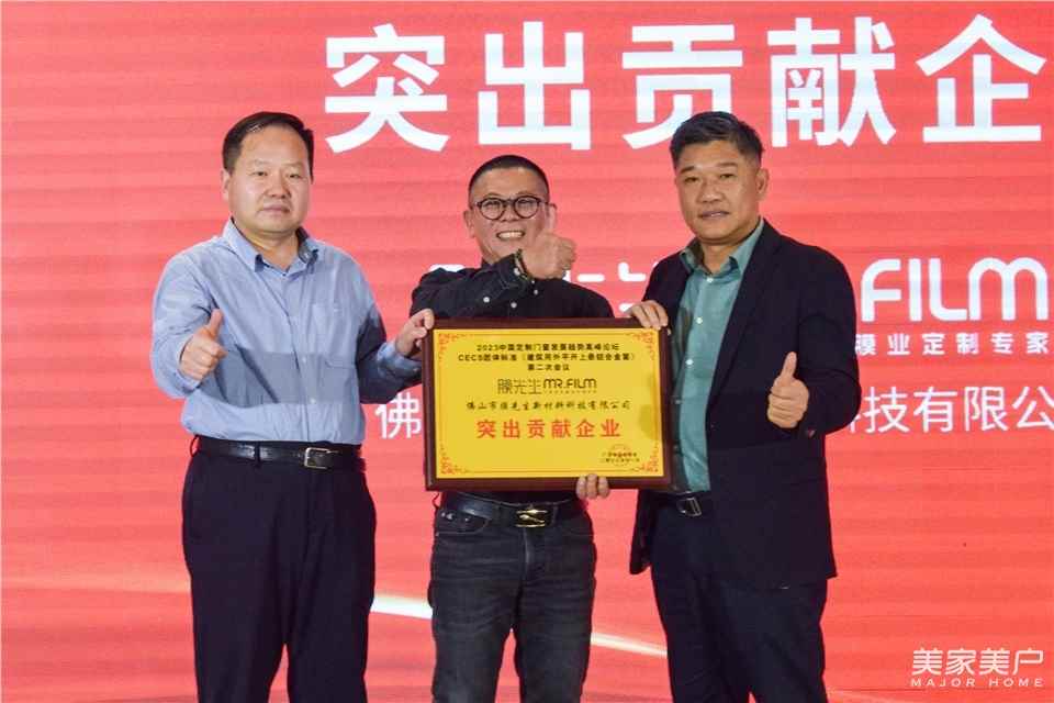 隨后,中國工程建設標準化協會建筑幕墻門窗專委會秘書長劉會濤、廣東省門業協會會長、派雅門窗董事長李鈞洪共同為膜先生頒發了“突出貢獻企業”榮譽牌匾。